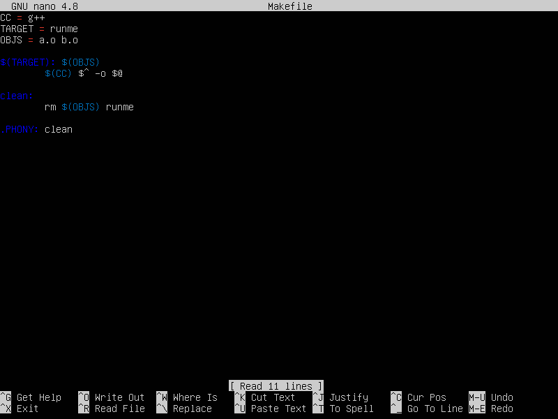 A target is usually the name of a file that is generated by a program; examples of targets are executable or object files. A target can also be the name of an action to carry out, such as ‘clean’ (see Phony Targets).