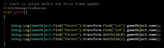 씬에 있는 비활성화된 오브젝트는 FindXXX()로 직접 찾을 수 없다. 하지만 부모 오브젝트가 있는 자식 오브젝트라면 부모 오브젝트를 먼저 찾고 transform 컴포넌트의 Find(), GetChild() 등으로 찾을 수 있다.
