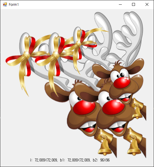 예상한 것과 다른 방식으로 출력된다. 다른 이미지 뷰어에 표시되는 사이즈와 동일한 방식은 b2다. i, b1은 약간 확대(96/72=1.3배) 되었다. 이미지 파일을 사용할 때는 어떤식으로 불러올지 잘 선택하자.