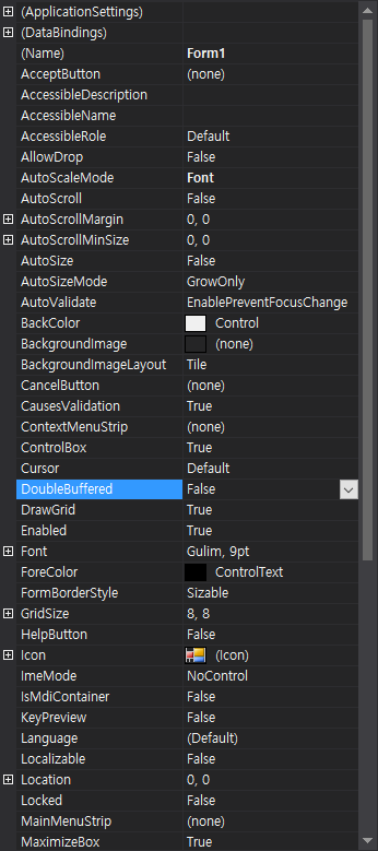 C# 2021. 12. 3. 23:15 |C# 폼 디자이너에서 폼은 더블 버퍼링 속성을 적용할 수 있지만 대부분의 컨트롤은 더블 버퍼링 속성이 보이지 않는다.