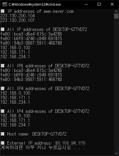 // 웹사이트를 이용한 외부 IP 주소 확인