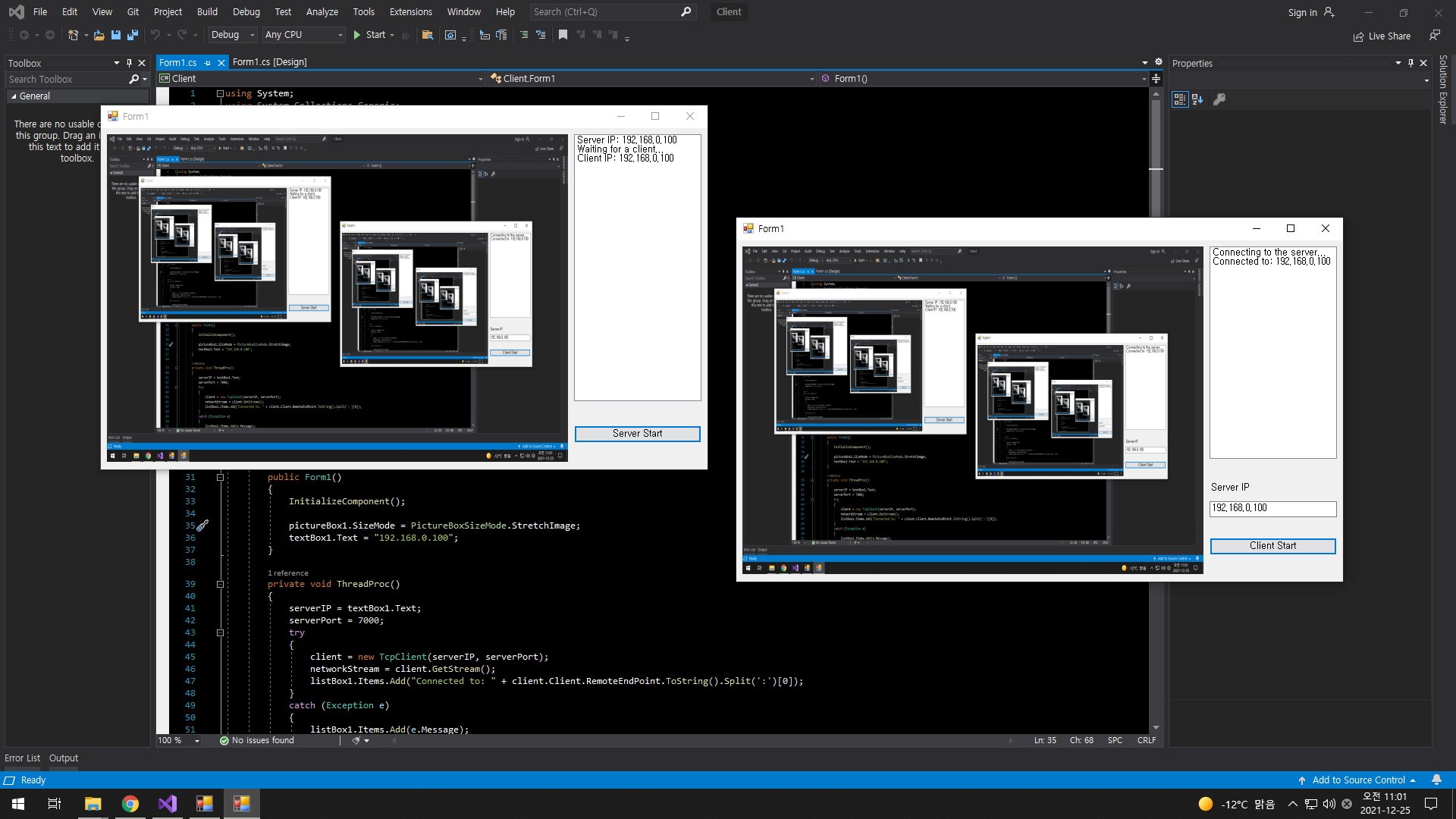C# 2021. 12. 25. 11:27 |2021.12.23 - [C#] - C# TCP/IP Image transfer - 이미지(파일) 전송 1
