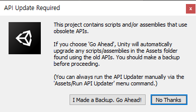 ※ API를 업데이트 하면 앱 완성 후 유니티에서만 정상 실행되고 실제 기기에서는 강제 종료되는 에러가 발생하기도 한다.