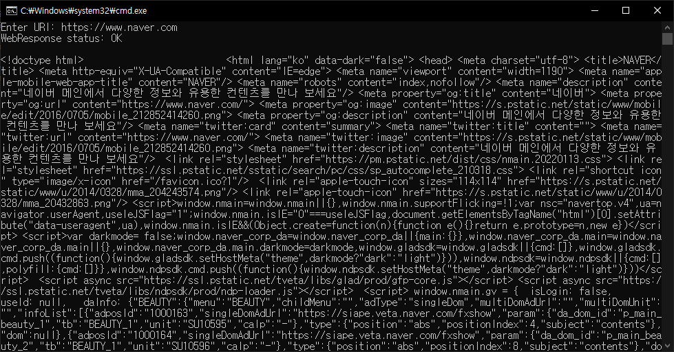 WebRequest 클래스를 이용해 웹페이지 데이터(내용)를 요청해 보자.