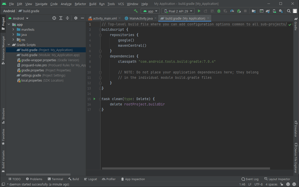 프로젝트 수준의 build.gradle 파일에서 Google의 Maven 저장소와 Maven 중앙 저장소를 buildscript 및 allprojects 섹션에 포함하세요.