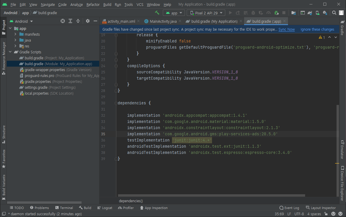 File - Project Structure... - Dependencies - app - + - Library Dependency - com.google.android.gms:play-services-ads 입력 - Search 클릭