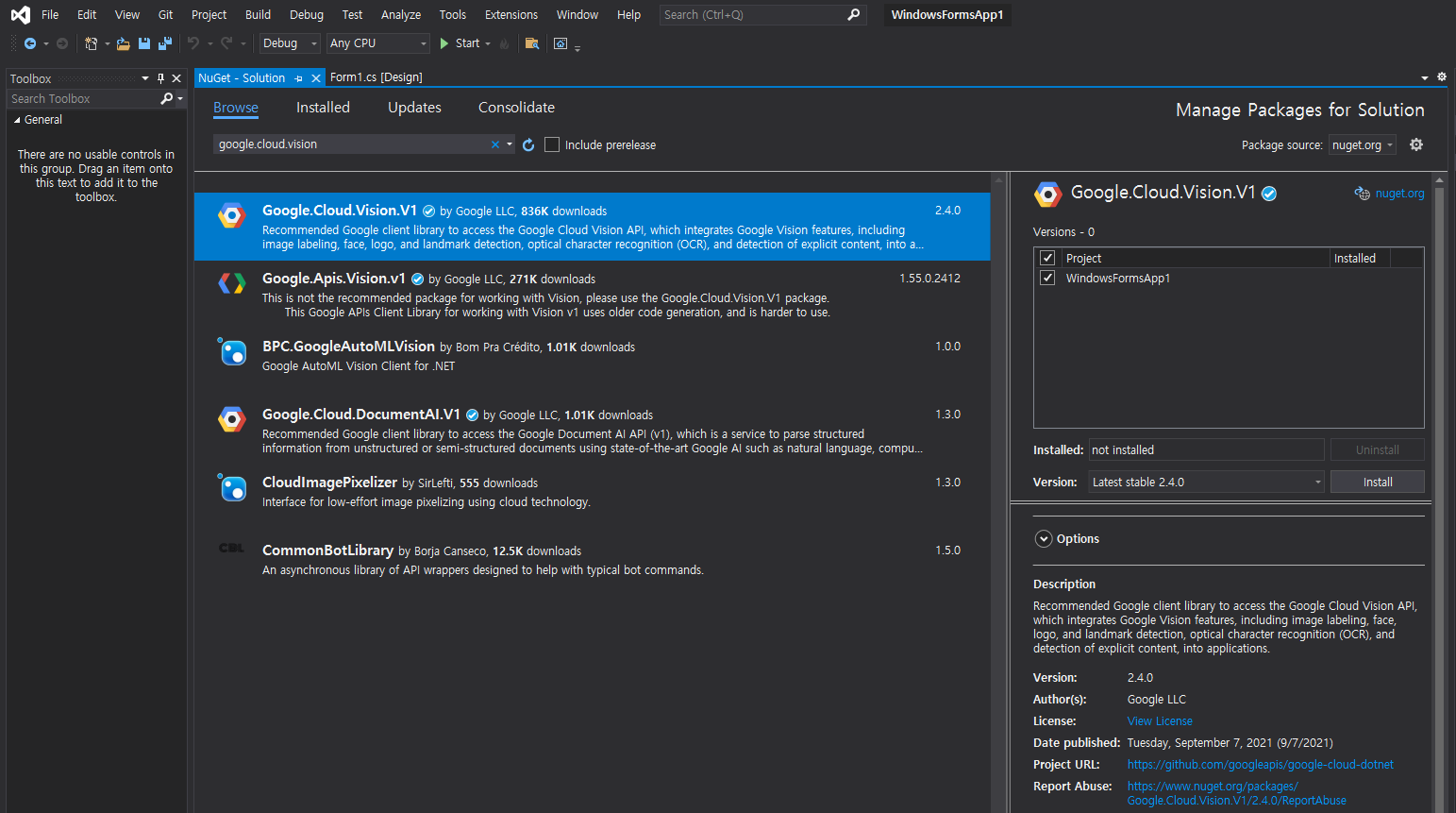 C# WinForm 으로 구글 클라우드 비전 API 결과를 확인해 보자. 아래 링크를 참고해 기본적인 구글 클라우드 비전 API 사용 준비를 한다.