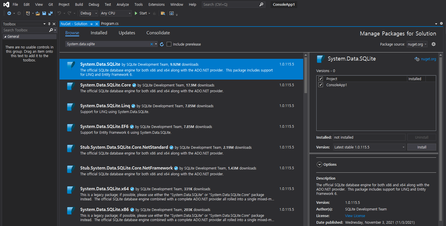 C#에 SQLite 데이터베이스를 연동해 보자.