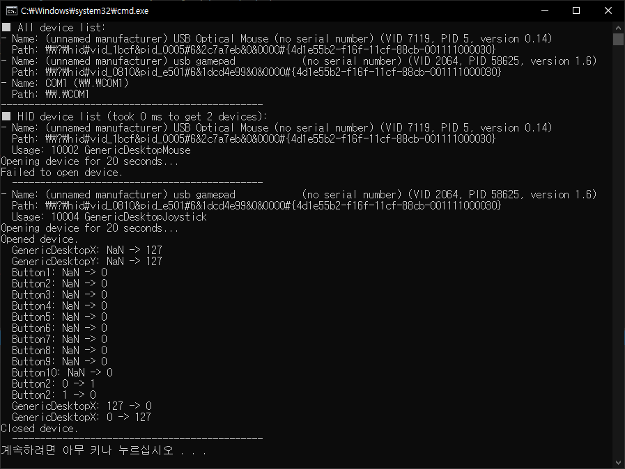 C# 2022. 4. 5. 17:02 |컴퓨터에 연결된 모든 HID(Human Interface Devices)를 확인하고 조이스틱(게임패드)의 입력을 체크해 보자.