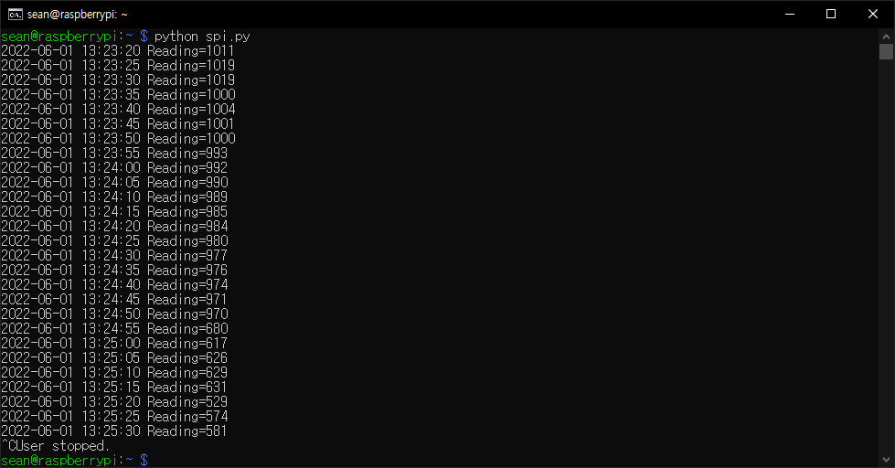 라즈베리 파이는 아날로그 신호를 입력 받을 수 없기 때문에 ADC(MCP3008)를 사용해야 한다.