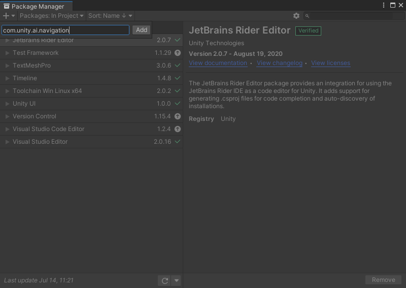 유니티 NavMesh Components는 아직 정식버전이 없다. 아래와 같이 설치하자.