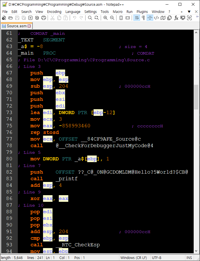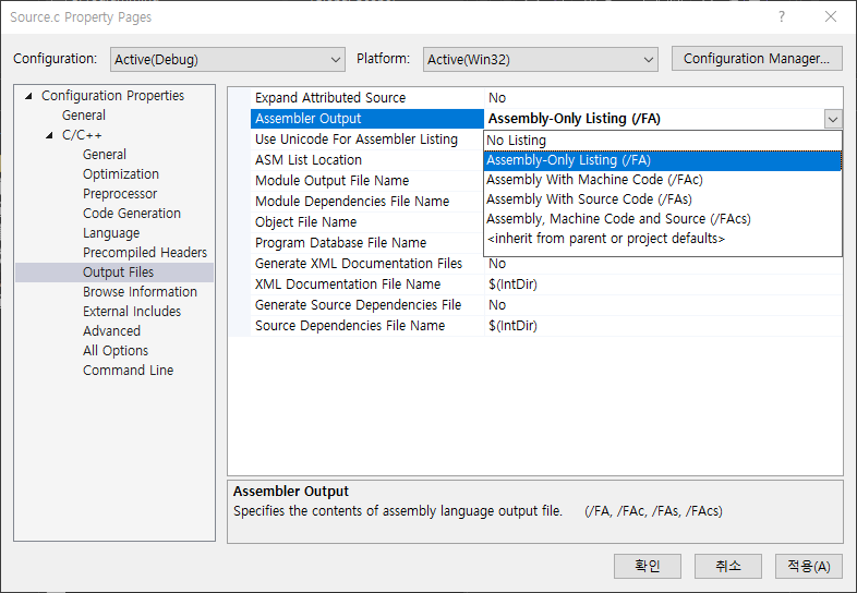 Visual Studio Assembler Output - 비주얼 스튜디오 어셈블리어 코드 생성