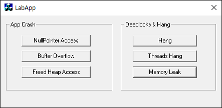 8회의 동작으로 320바이트의 메모리가 할당되고 해제되지 않았음을 확인 할 수 있다. 메모리 누수로 의심되는 코드는 CLabAppDlg 클래스의 OnMemoryleakBtn 함수다.