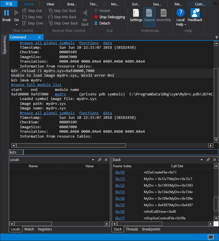 WinDbg 버전(타임스템프) 일치하지 않는 심볼파일 로드하기