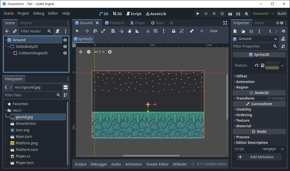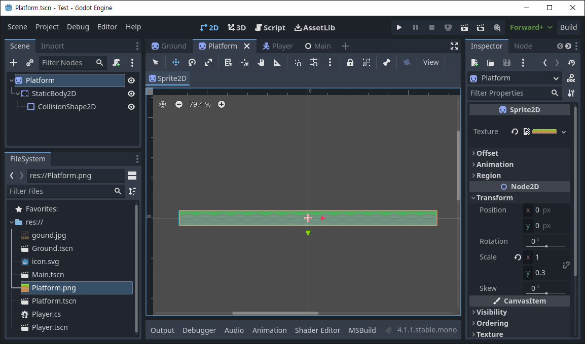 필요하다면 Sprite2D - Transform - Scale을 조절한다.