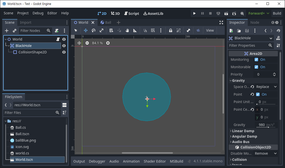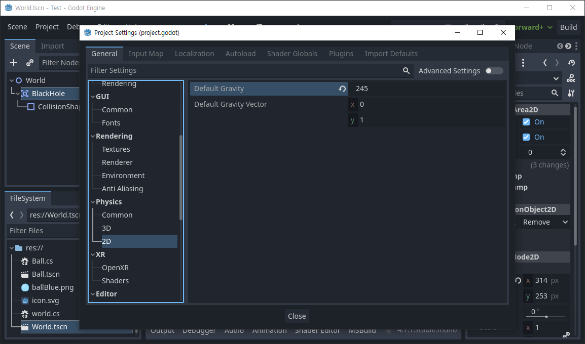 [Godot] Area2D Gravity 중력