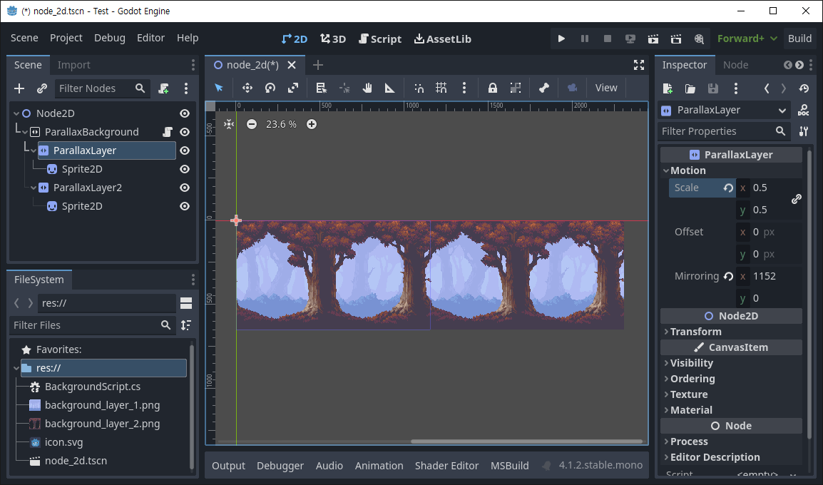 Godot 2023. 10. 9. 13:07 |ParallaxBackground와 ParallaxLayer를 이용해 배경 화면을 자연스럽게 스크롤 해 보자.