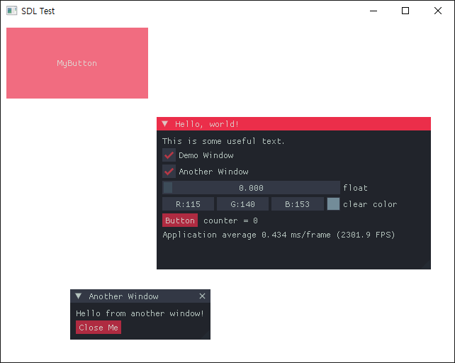 SDL에서 ImGui를 이용해 간단한 그래픽 유저 인터페이스를 구현해 보자.