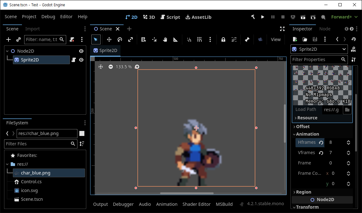 [Godot] Sprite2D Simple Animation 스프라이트 간단한 애니메이션