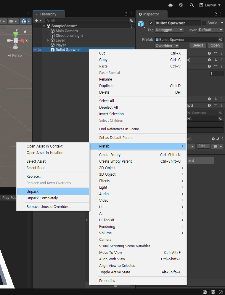 예전에는 GameObject - Break Prefab Instance 메뉴가 있었으나 지금은 사라졌다.