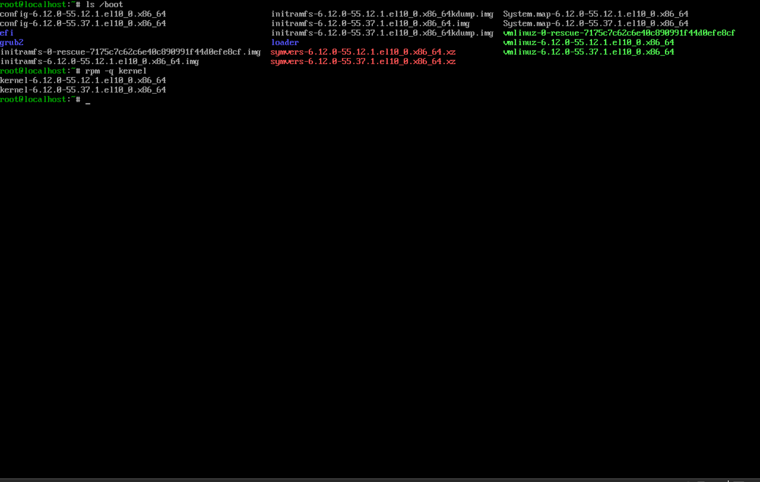 rpm -q kernel 명령으로 확인해 보면 위 그림에서 삭제한 커널이 더 이상 표시되지 않는다.