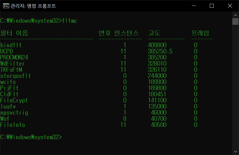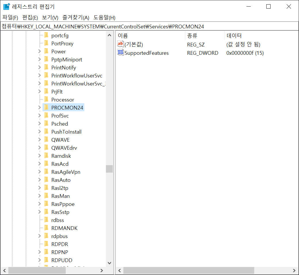 PROCMON24 라는 필터가 등록되어 있는것을 확인할 수 있다.