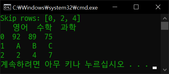 df = pd.read_csv('file.csv', sep=';', skiprows=skip, names=('영어', '수학', '과학'))