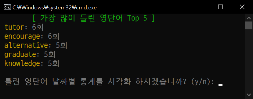 answer = input("\n 틀린 영단어 날짜별 통계를 시각화 하시겠습니까? (y/n): ")