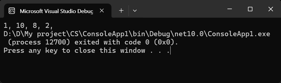 Console.Write($"{b}, ");