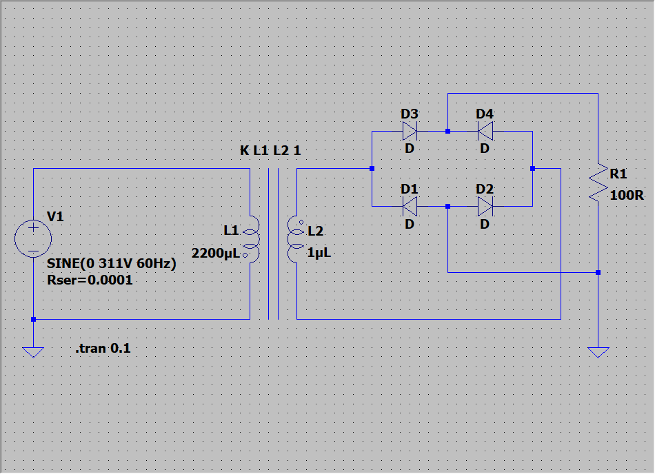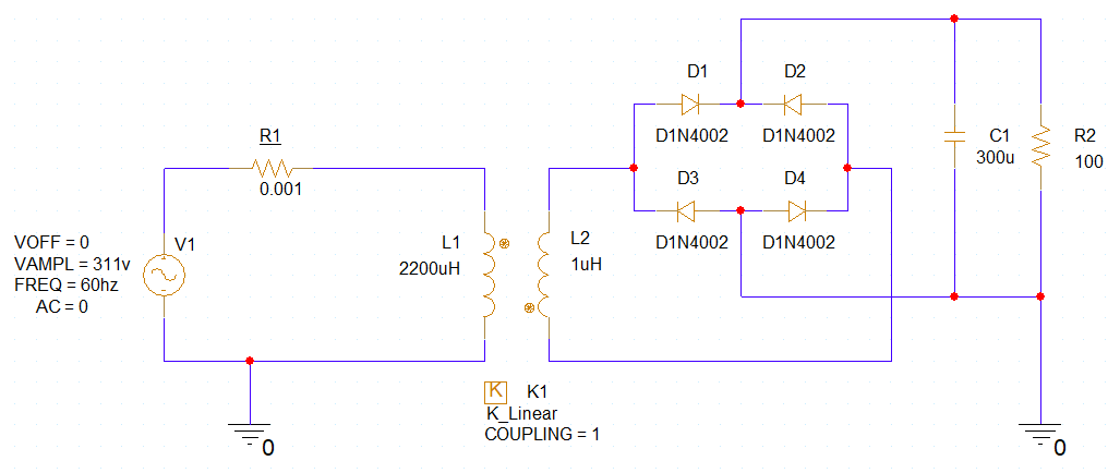 ● Transformer: L2 VALUE는 3µH로 수정한다. 1µH로 출력되는 전압은 너무 작아 LM7805로 제대로 정류할 수 없다.