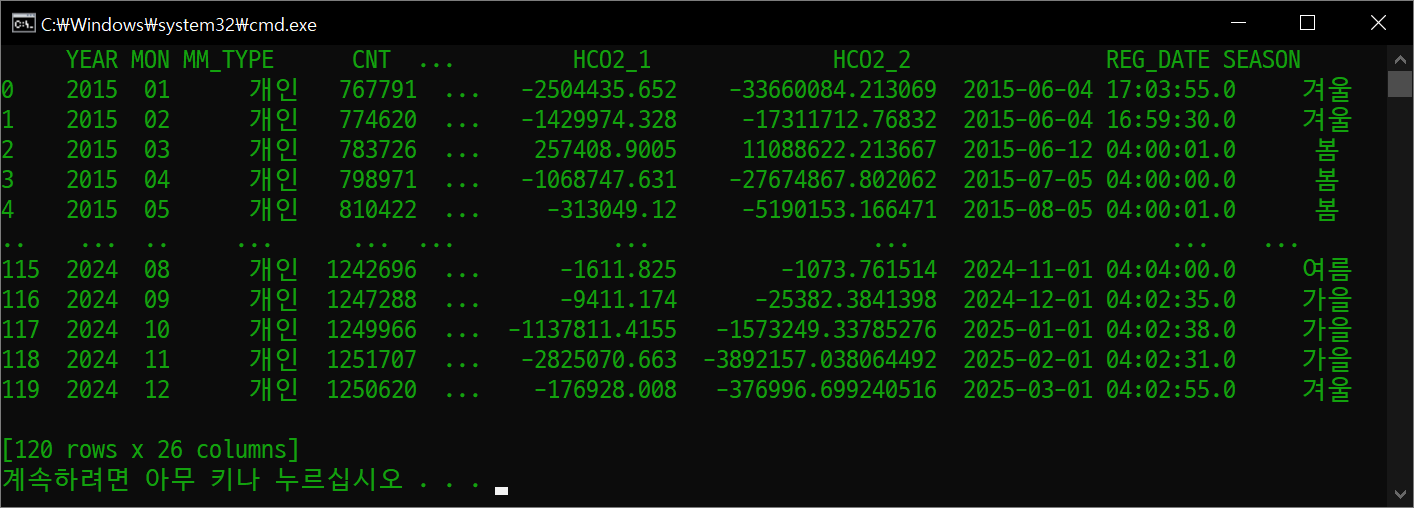 General 2025. 10. 19. 16:24 |서울 열린 데이터 광장의 공공 데이터(에코 마일리지 에너지 사용량 통계 정보)를 수집하고 분석해 보자.