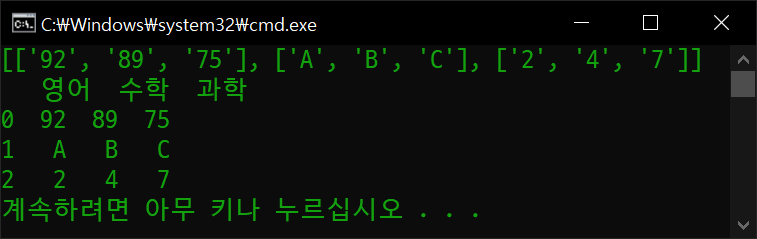 df = pd.DataFrame(data, columns=('영어', '수학', '과학'))
