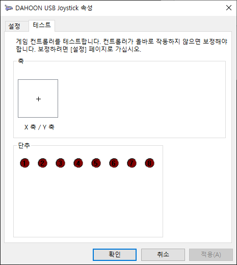 스틱과 버튼을 테스트 하고 설정 할 수 있다
