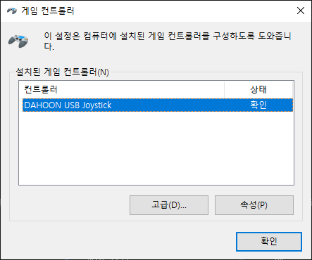 DAHOON USB Joystick을 선택하고 속성을 클릭한다.
