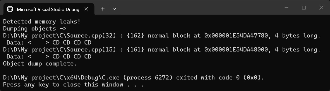 //_CrtDumpMemoryLeaks();