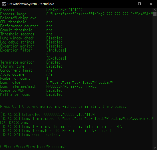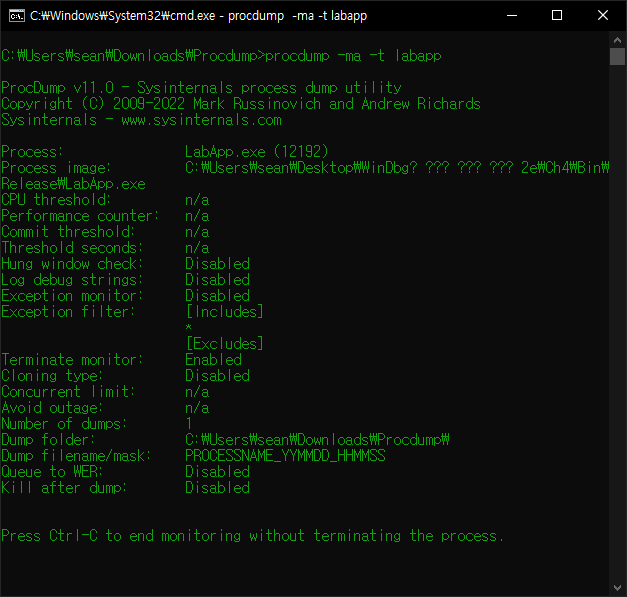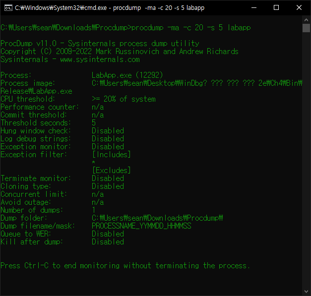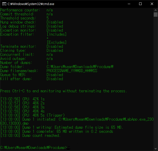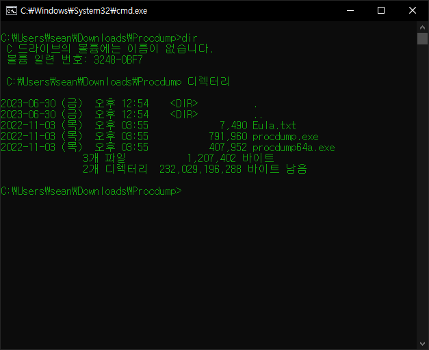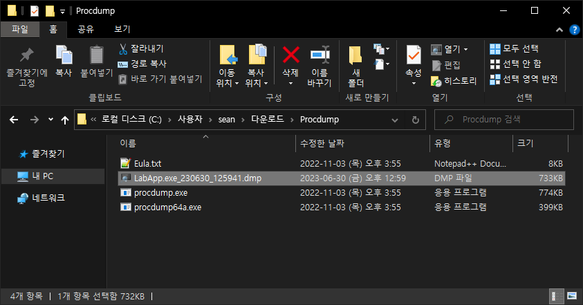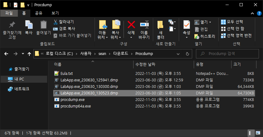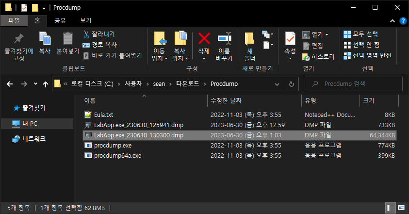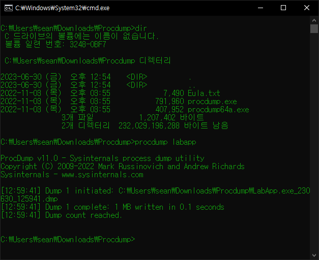실행중인 프로세스 메모리 덤프 생성 ProcDump