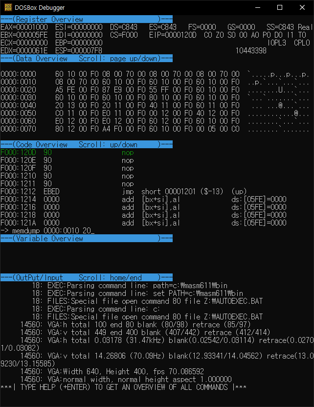 0x001F1E20에서 [eax]가 가리키는 메모리 주소(0x00000000)에 0x41('A')을 복사하려 하고 있다.