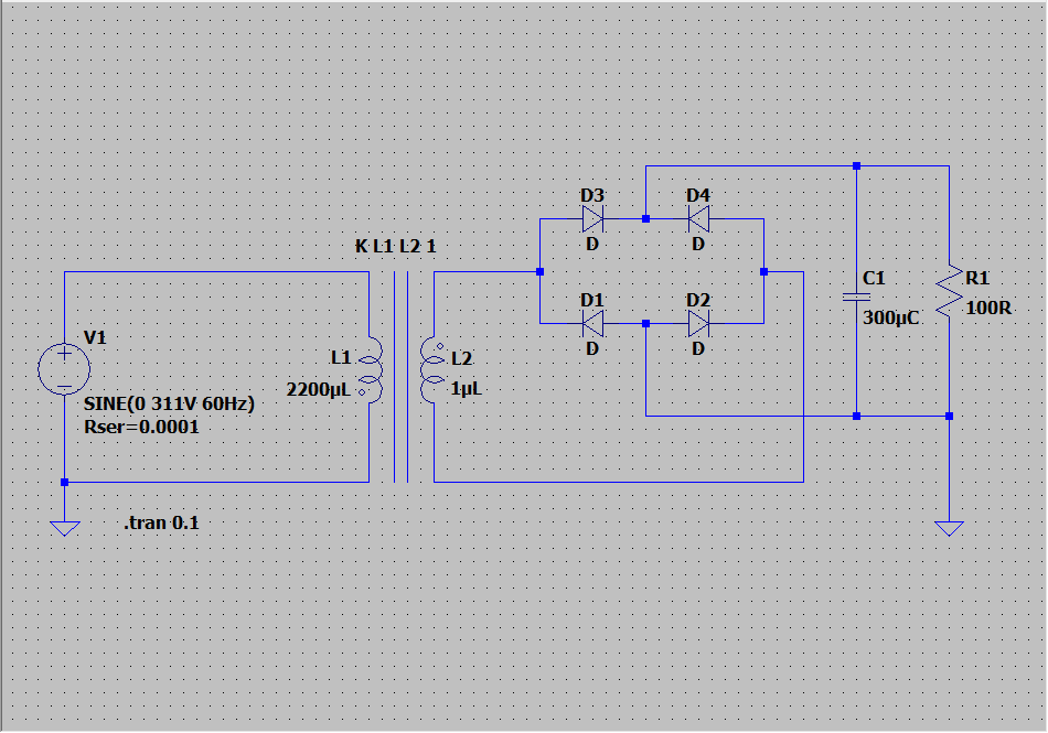 ● Transformer: L2 VALUE는 3µH로 수정한다. 1µH로 출력되는 전압은 너무 작아 LM7805로 제대로 정류할 수 없다.