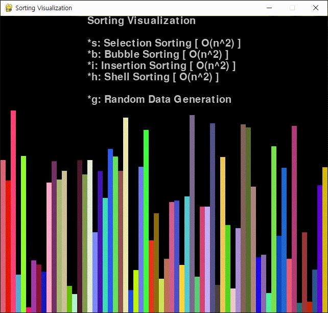 General 2024. 3. 9. 19:10 |기본 정렬 알고리즘 네 가지(선택, 버블, 삽입, 셸)를 파이게임(Pygame)으로 시각화 해 보자.