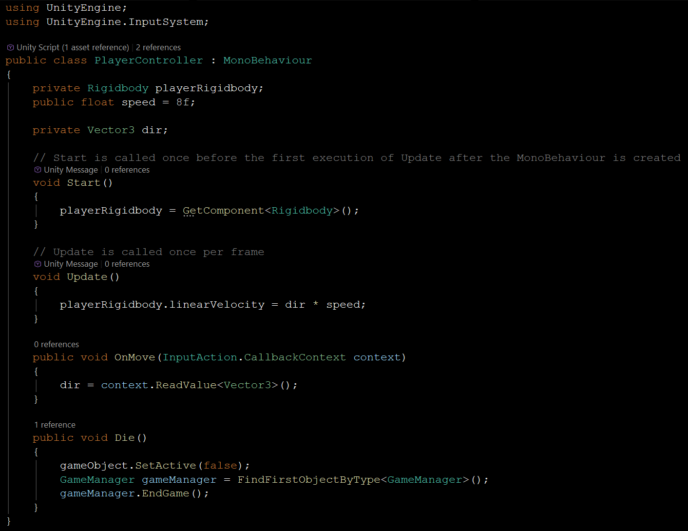 private PlayerMovement playerMovement; // 플레이어 움직임 컴포넌트