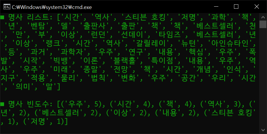 print("명사 리스트:", nouns)