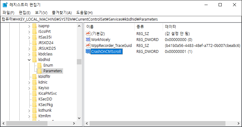 PS/2 키보드의 경우 아래 경로에 키를 생성한다. HKEY_LOCAL_MACHINE\System\CurrentControlSet\Services\i8042prt\Parameters