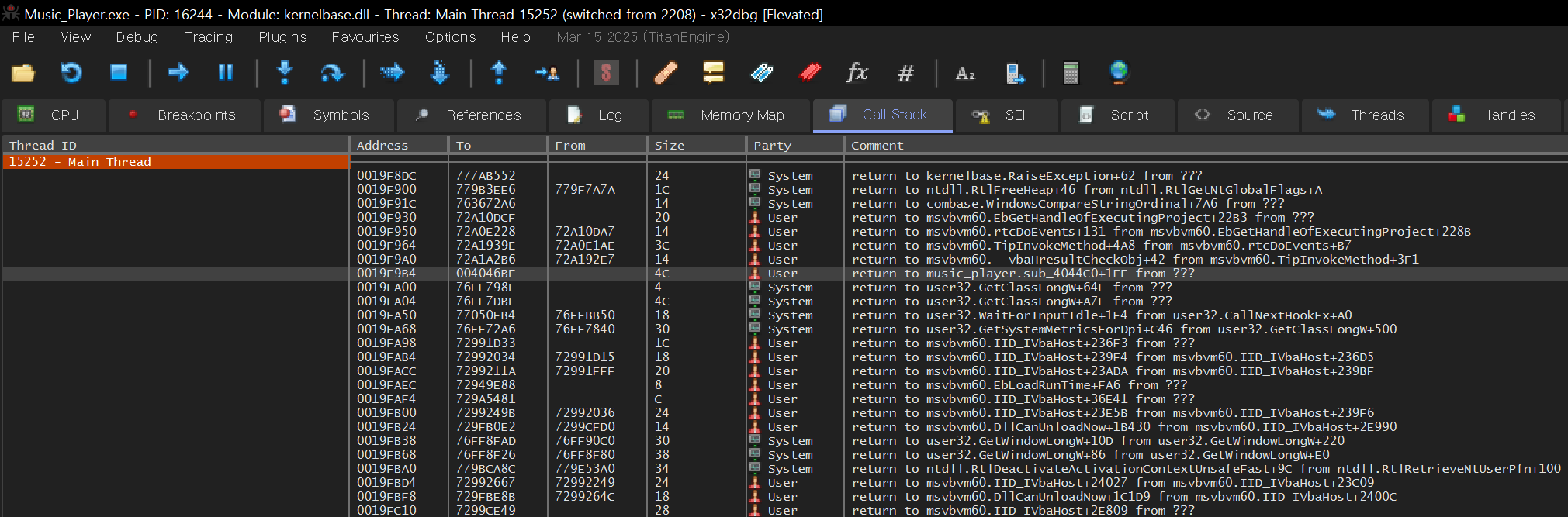 [x32dbg/x64dbg] Exception Handling and Call Stack Check 예외 처리 및 콜스택 확인