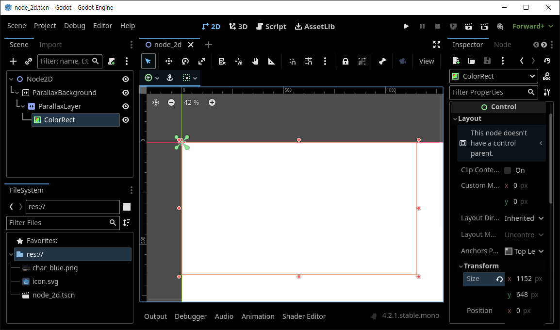 ColorRect - Layout - Transform - Size를 뷰포트와 동일하게 조절한다.