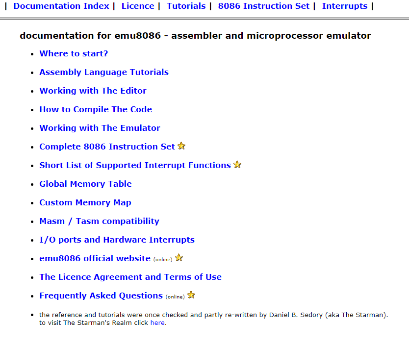 help 버튼을 클릭하면 Tutorial, Instruction Set, Interrupt등 여러가지 설명을 확인할 수 있다.