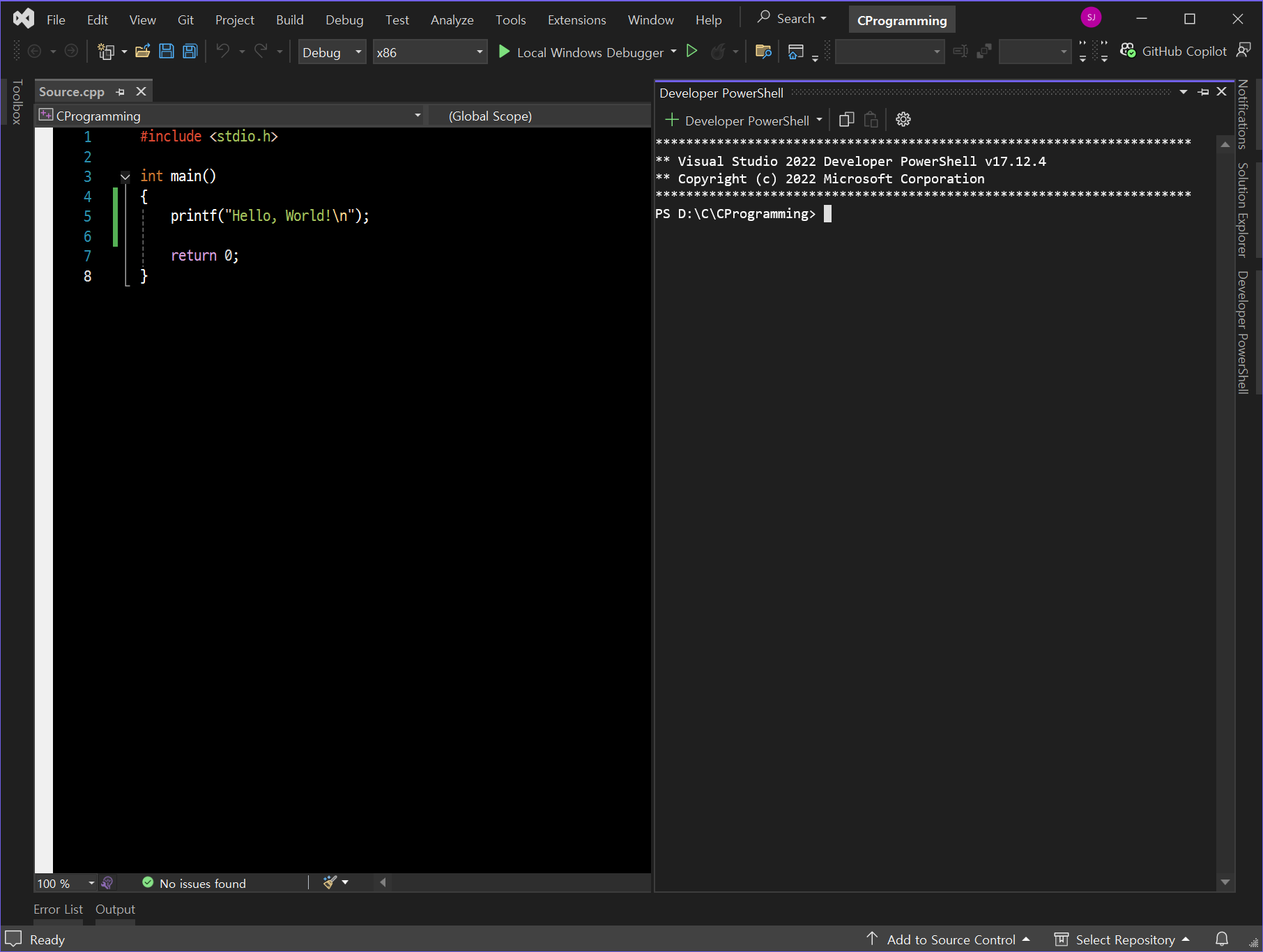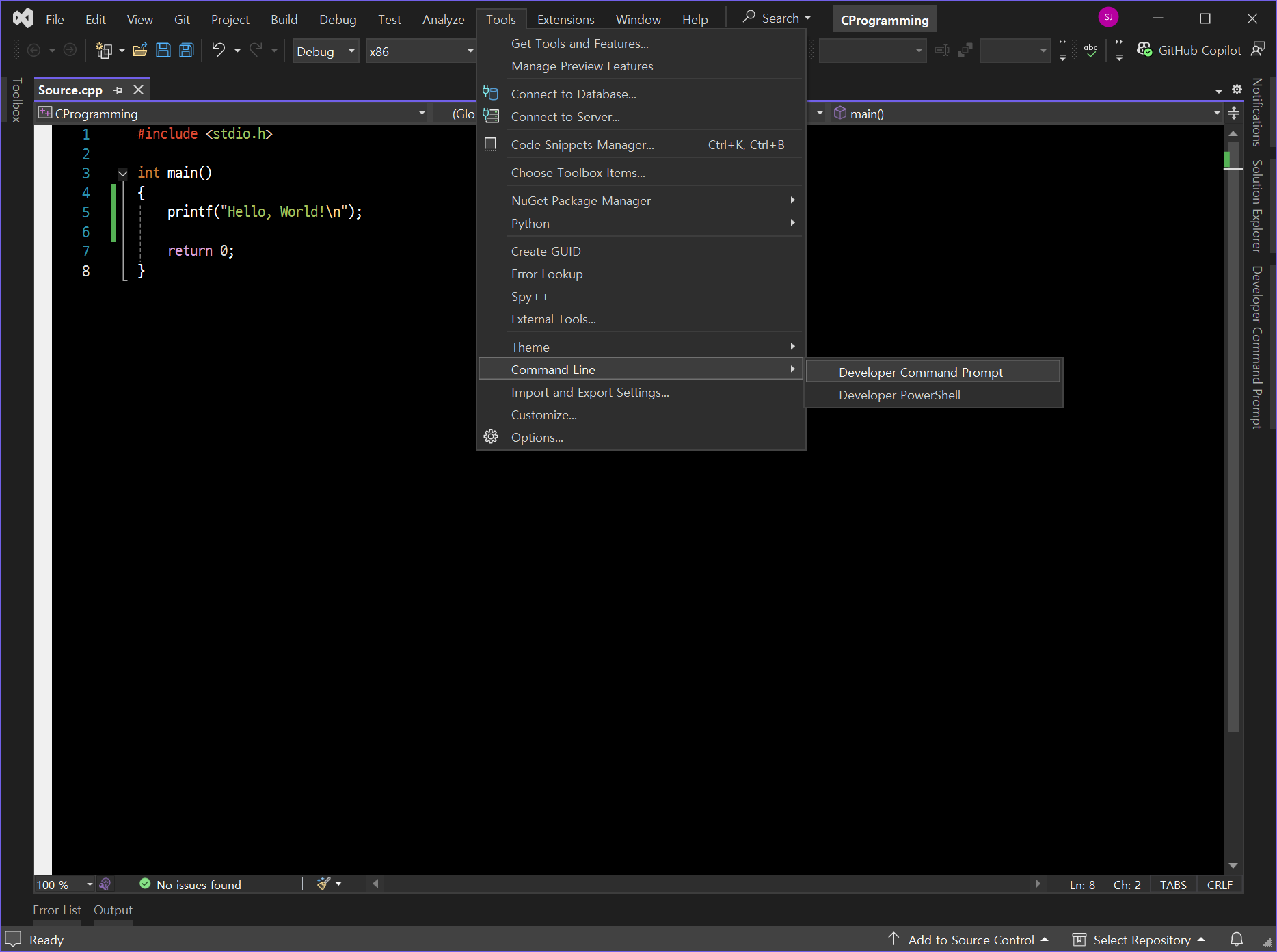 PowerShell 창에서 작업해도 되지만 원한다면 Deveoper Command Prompt로 바꿀 수 있다.