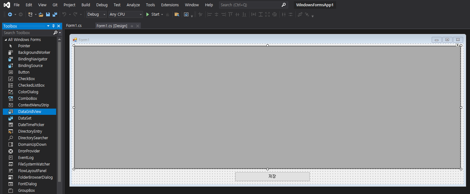 WinForm에 DataGridView를 적당히 배치한다.